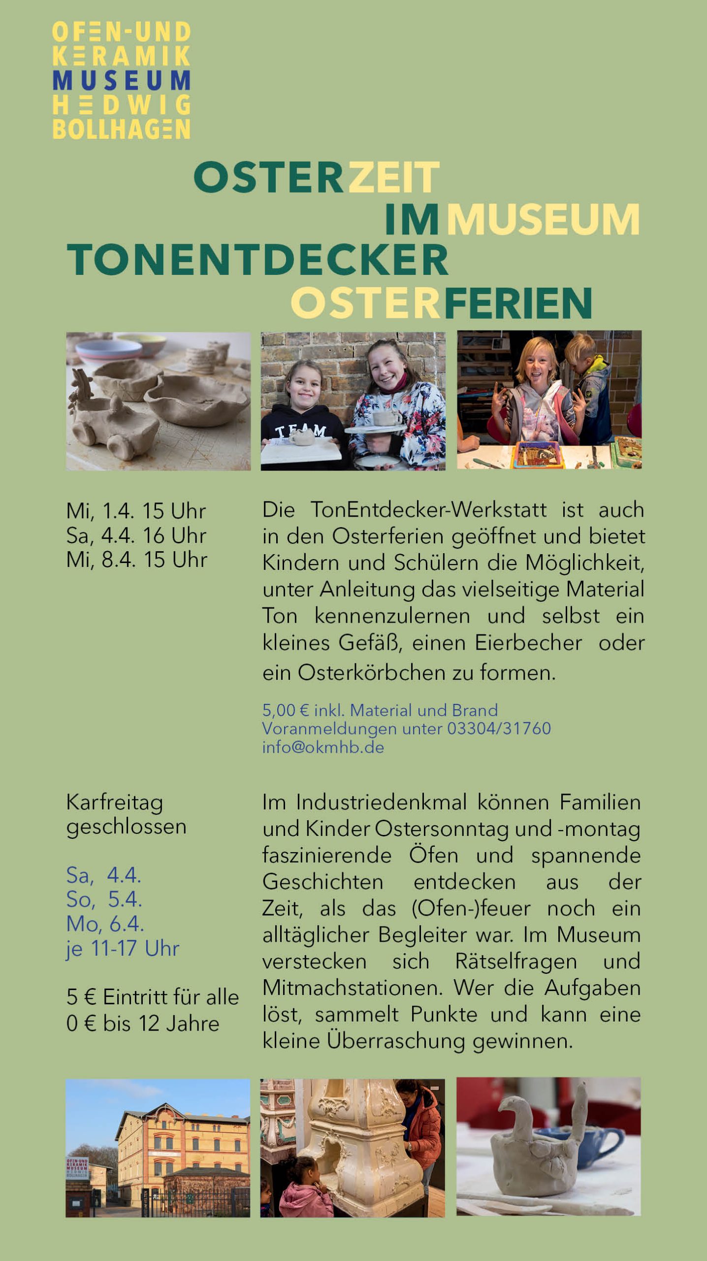 Das Hedwig Bollhagen Museum zeigt in seiner Dauerausstellung einen ausgewählten Ausschnitt aus dem persönlichen keramischen Nachlass der einzigartigen Keramikerin Hedwig Bollhagen, die unweit von Velten in den HB Werkstätten Marwitz mit ihren zeitlosen Geschirrformen und ganz charakteristischen Dekoren Keramikgeschichte geschrieben hat.